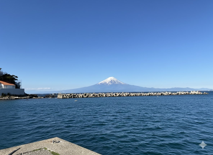 ちなみに画像をAIさんに富士山が見えるはずなんですがどこですか?くっきりしてって頼んだらこんな画像を作ってくれました。