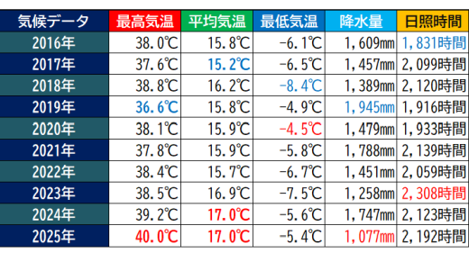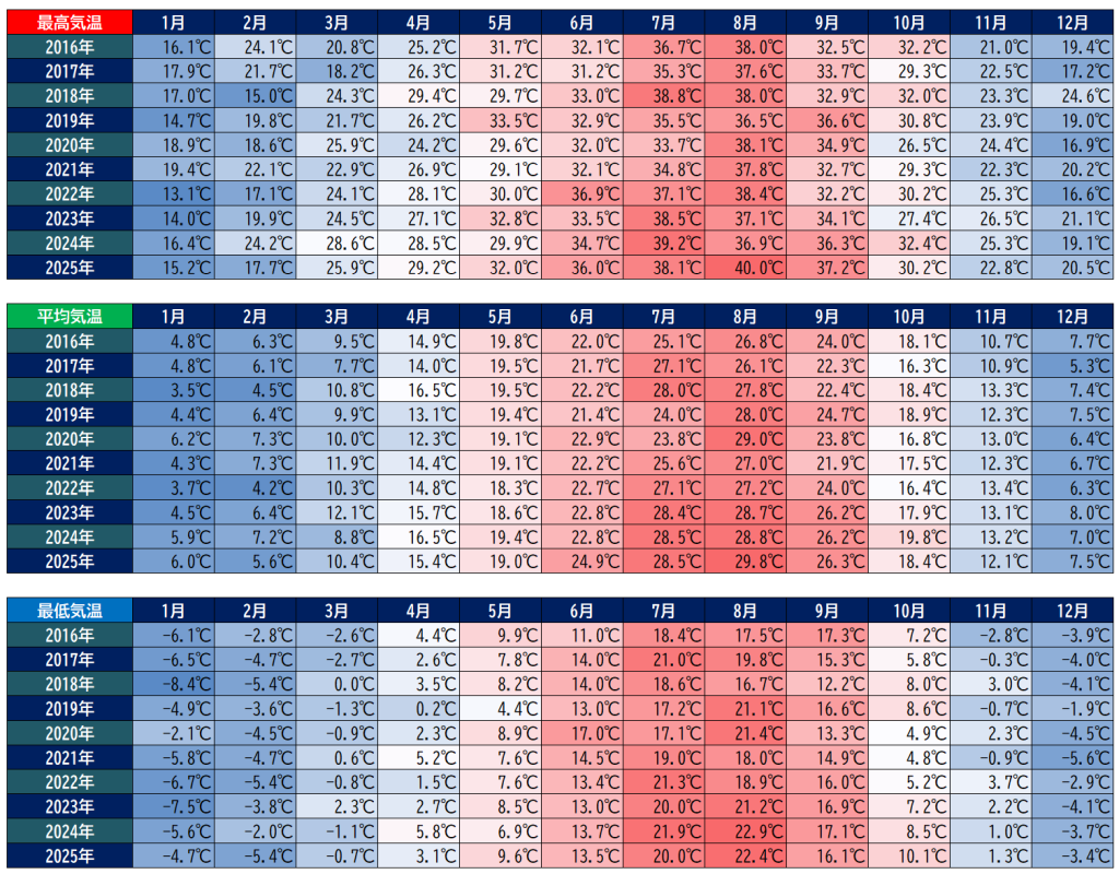 我が家から近い場所のデータを気象庁のWebから持ってきています。