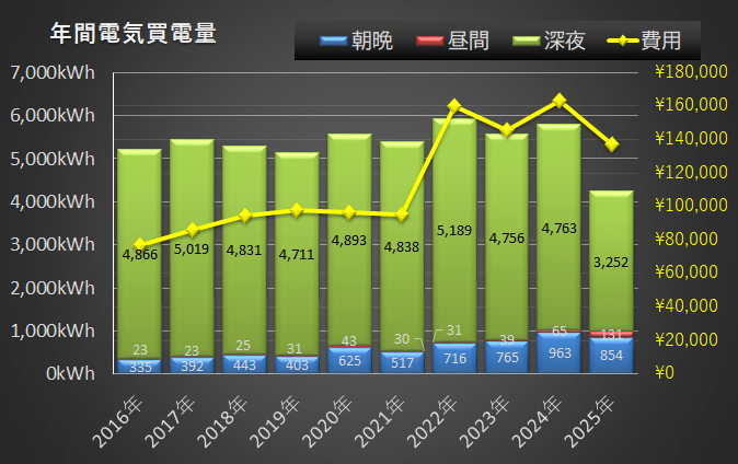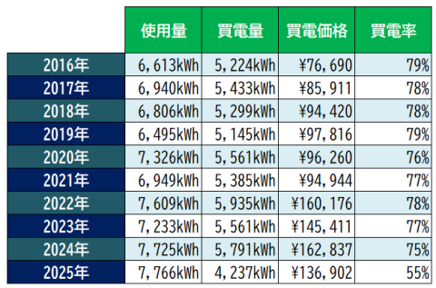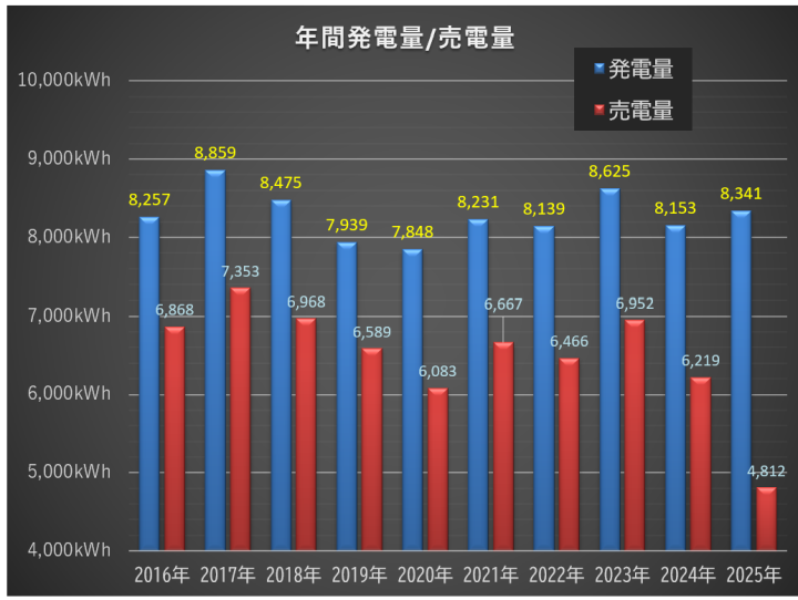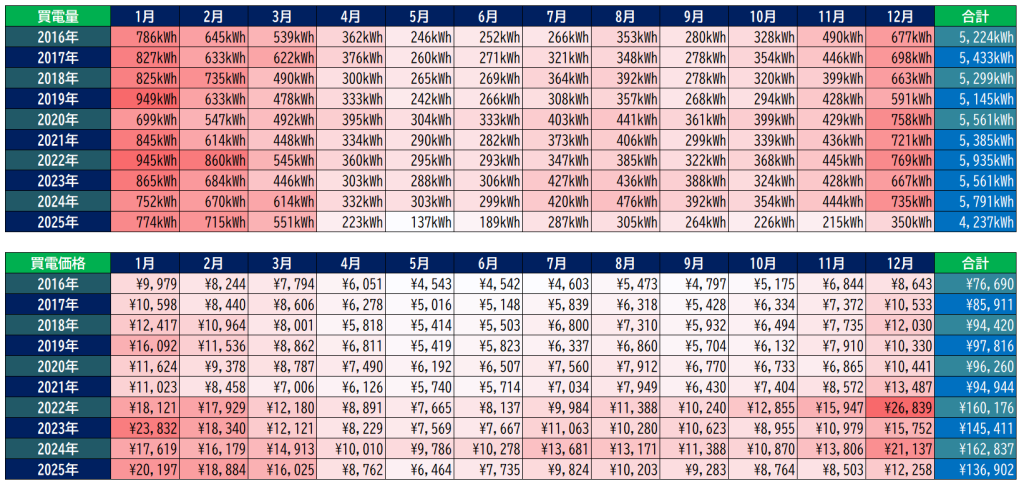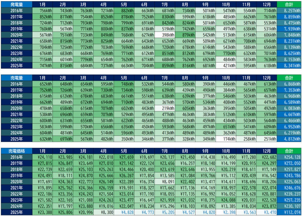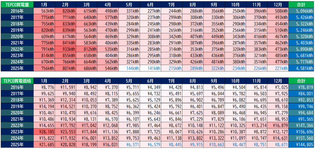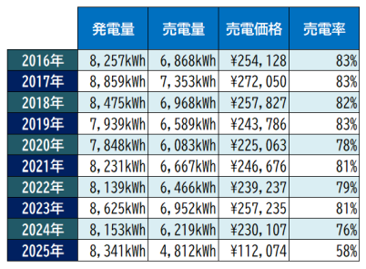 2025年途中から卒FITしているので極端に値がさがってます。