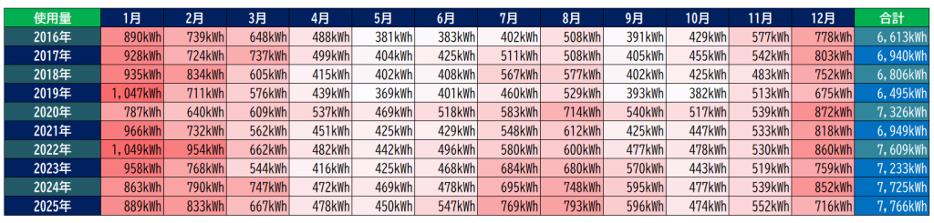 ブログ記事にて毎月光熱費を報告していますが、ここでは、今までの年間記録をまとめていきます。